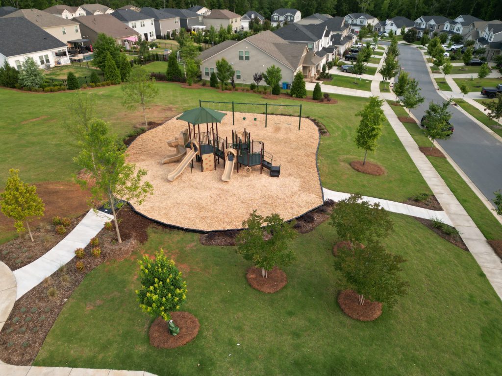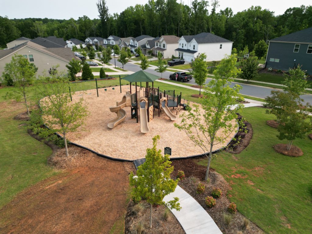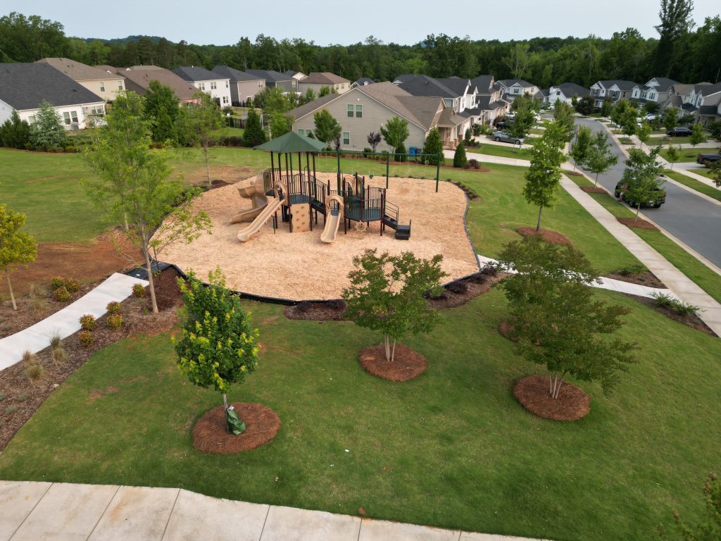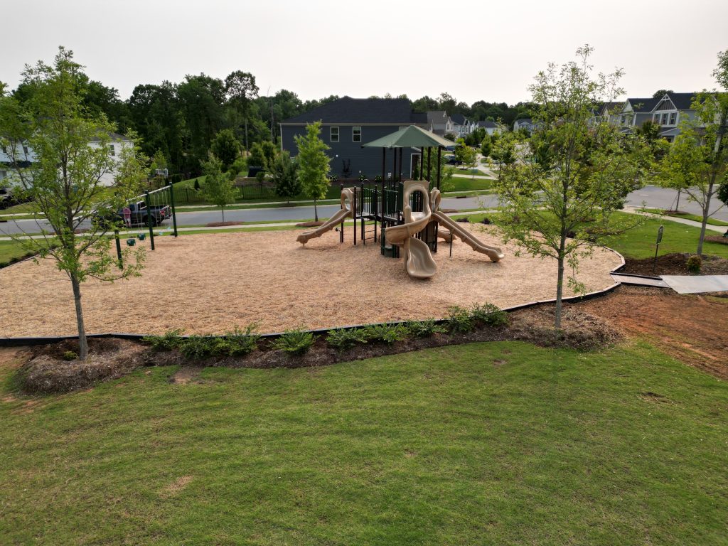 For Amberley HOA we wanted to design a beautiful natural playground that would fit seamlessly into the communities landscaping. Together, we designed a play space for 2-12 year olds that features multiple climbers that vary in difficulty, interactive panels, and a spiral slide! This play unit also has an integrated shade conveniently placed above the main deck to help protect children from the sun.