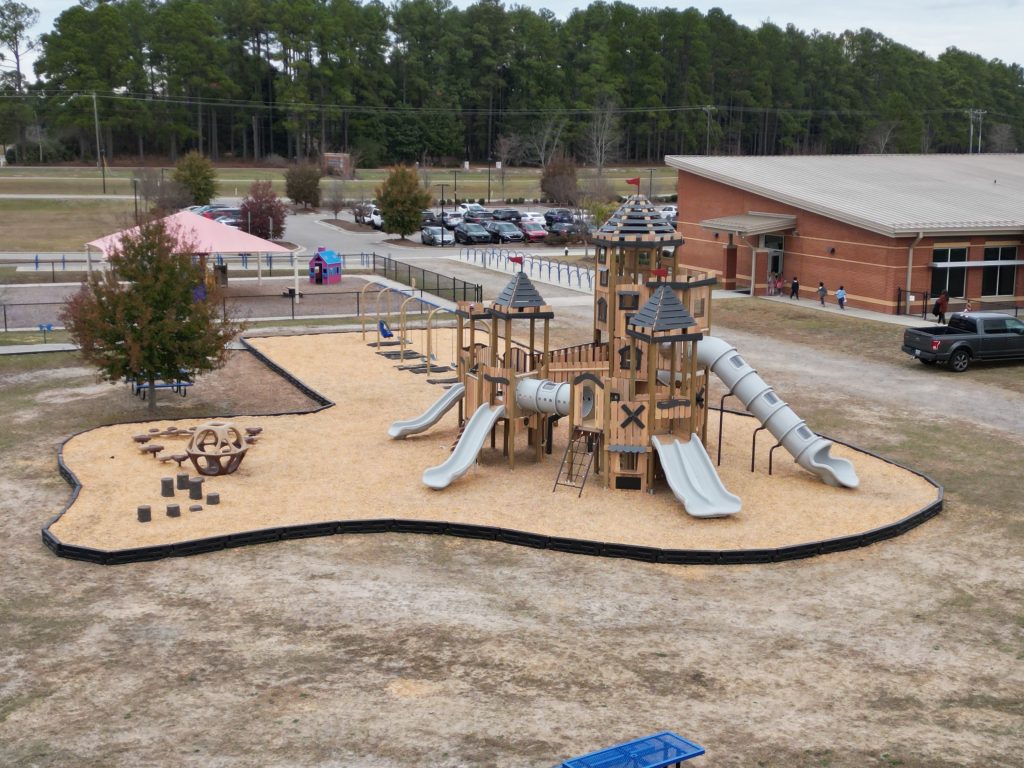 We worked with McDeeds Creek Elementary School to design a natural playground that maximizes imagination. This project features a natural themed castle structure. Themed structures such as this enhance children natural creativity and encourage imaginative social play. This specific play structure is made of high-end wood with corrosion properties providing a beautiful natural aesthetic without compromising structural integrity.